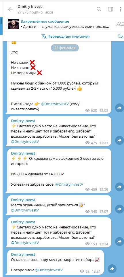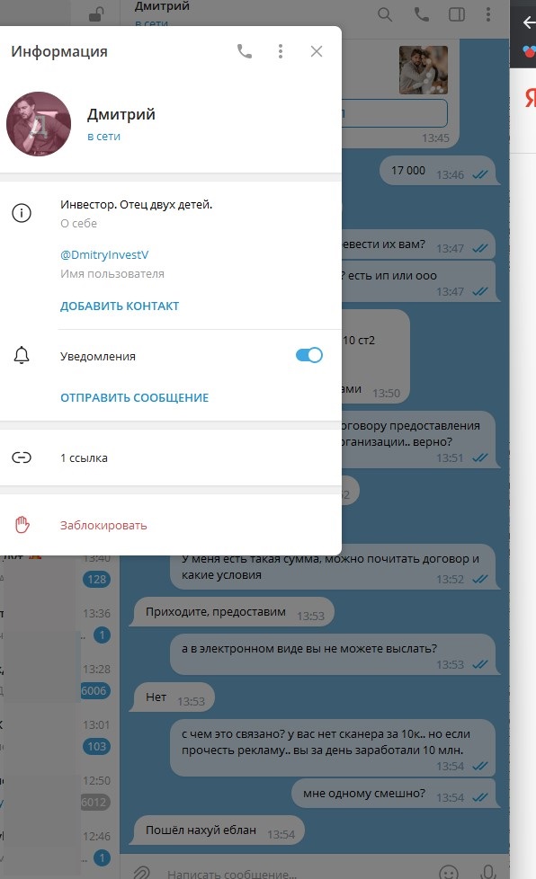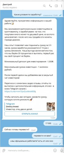 Мошенник Дмитрий и его телеграмм Dmitry Invest