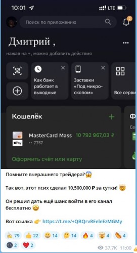 И так, сегодня в нашем разборе - Дмитрий - его телеграм @DmitryInvestV Из рекламы на этого индивида, мы узнаем, что Дмитрий настолько успешный, что заработал за сутки более 10 млн рублей.. ![]() ![]() так ли это на практике? попытаемся узнать... Заходим на канал Димки (с рекламы) Dmitry Invest и спрашиваем про условия! Из разговора следует, что суть заработка с ним - это перекинуть ему деньги и ждать чудо, которое он там сотворит.. а именно, заблокирует Вас и украдет все ваши деньги.. Мошенники по типу Дмитрия не редкость и у всех у них одна схема: Получить ваши деньги, покормить завтраками и заблокировать На мои вопросы: Работает ли официально, если ли ип и прочее. он ответил.. но финальный ответ был таким "Пошёл на*уй е*лан" Переписка для ознакомления: ![]() ![]()