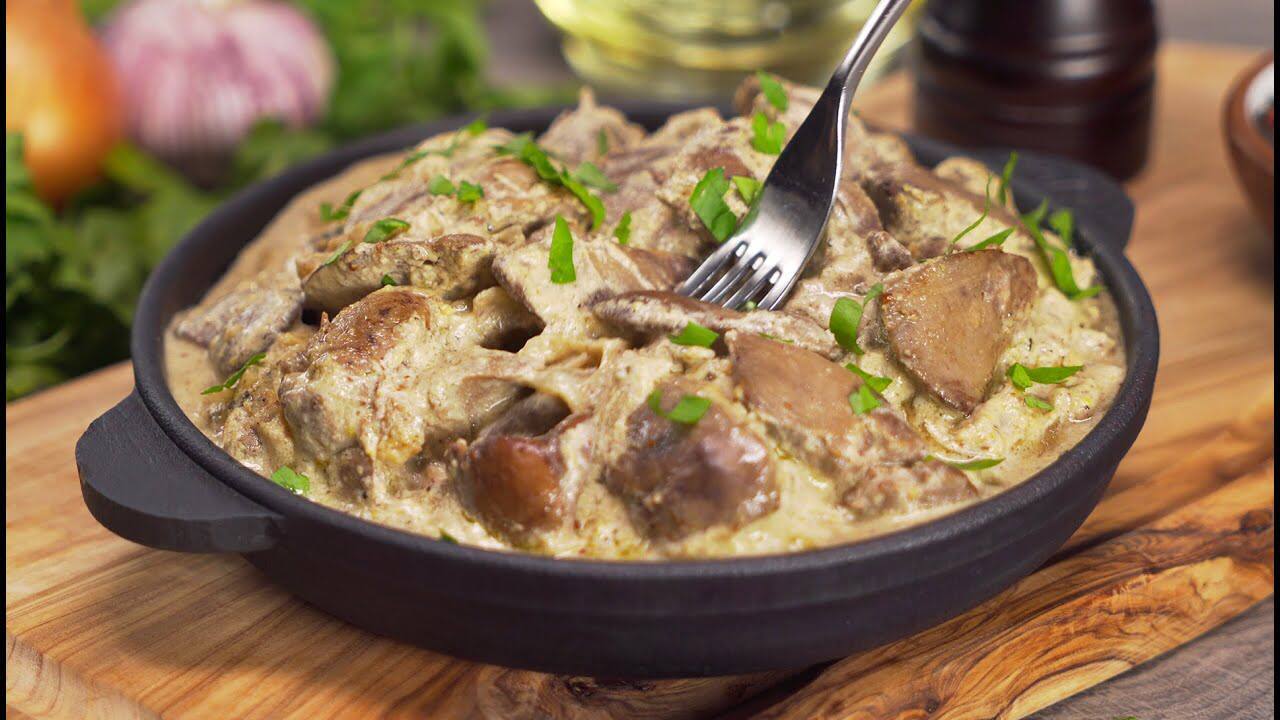 Куриная печень в сметанном соусе