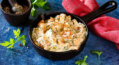 | Жареные лисички в сметане |