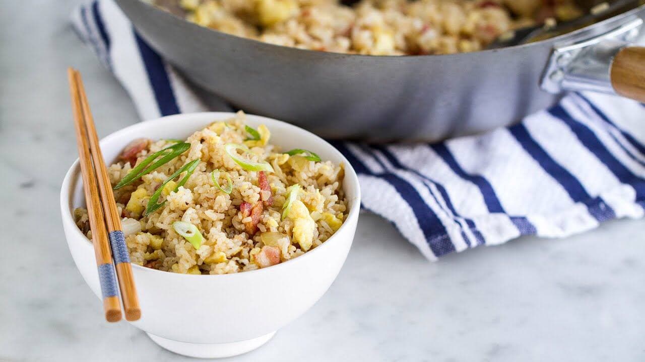 Жареный рис с яйцом и беконом