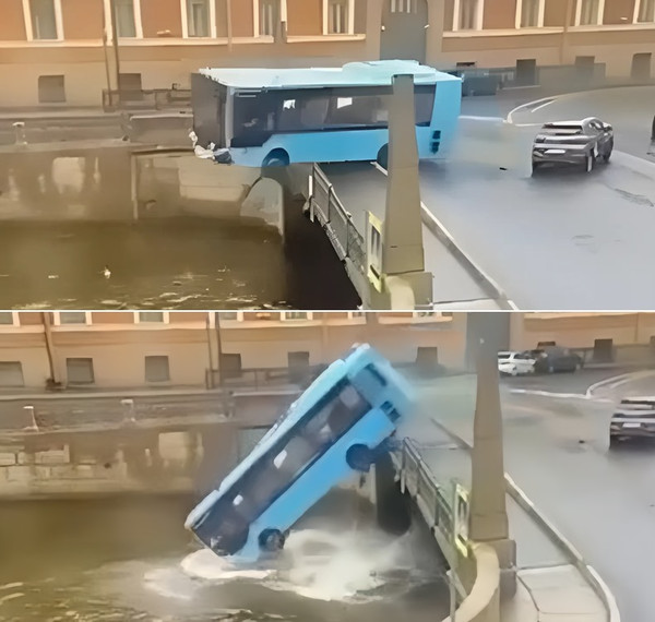 Событие было зафиксировано на видео. В записи видно, как автобус столкнулся с несколькими автомобилями, разрушил парапет и упал в воду. Обстоя..