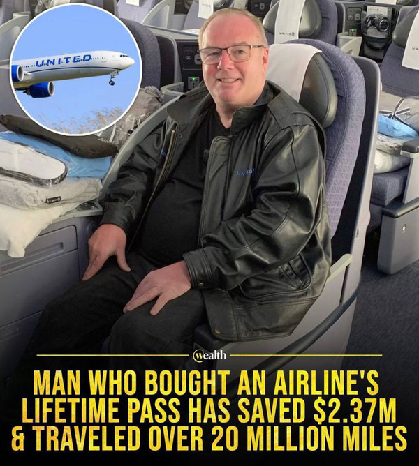 Мужчина на фото сэкономил более $2 млн на авиаперелетах, благодаря своему умению выгодно путешествовать. В 1990 году он приобрел пожизненный абонемент авиакомпании за $290 000 и за 34 года совершил путешествия в более чем 100 стран мира, предпочитая полеты первым классом. Только за 2019 год мужчина преодолел расстояние, сравнимое с шестью полетами на Луну.