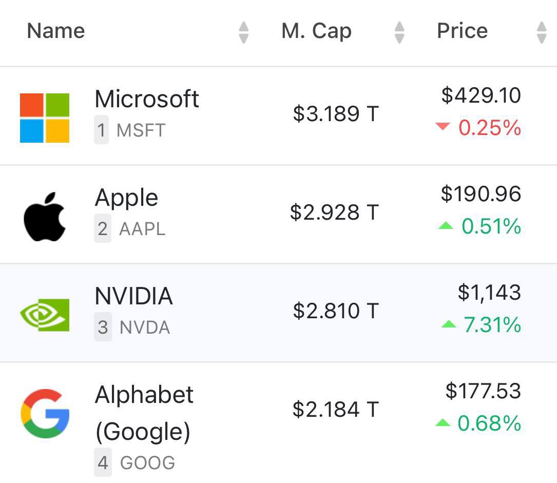 НVIDIA достигла исторического максимума капитализации, которая сейчас составляет порядка $2,8 трлн. Компания ежеминутно прибавляет в стоимости порядка $1 млрд и опережает Google по рыночной стоимости почти на $700 млрд.
