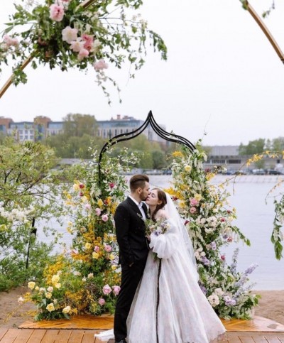 Дата свадьбы была известна, но невеста, как и положено, до последнего скрывала свой наряд. Оба волновались, но все прошло идеально. Порадоваться счастью пары приехали много друзей и родных. Пожелаем семье благополучной, долго..
