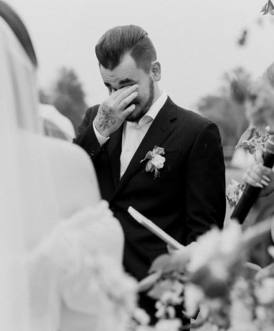 Подписчики все еще любуются прекрасной парой, которая продолжает радовать милыми фото с недавней свадьбы. Особенно растрогало фото, где муж прослезился, когда перечитывал историю своего знакомства с Дарьей. Есть полные фото образа невесты и совместные композиции.