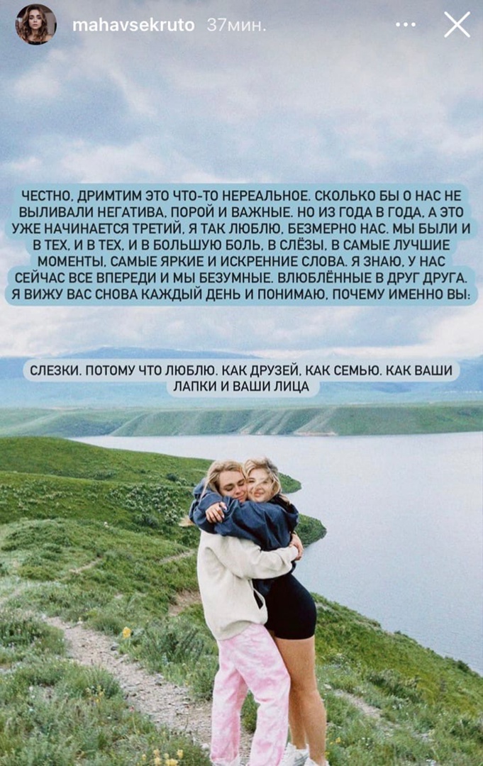 Недавно популярная тиктокераша Маха Горячева в своих сториз призналась в огромной любви всем участникам Дрим Тим Хауса. Девушка написала большое признание, поставив на фон фотографию с блогершей Аней Покров, где девушки крепко обнимаются.