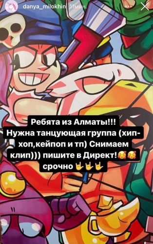 Парень заявил, что для съемок музыкального видео им нужна в качестве массовки танцующая группа, находящаяся в Алматы. Танцевать ребята должны желательно в стиле хип-хоп или к-поп. Поклонники Дани заинтригов..