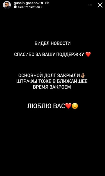 После того как стало известно о многомиллионном налоговом долге, российский блогер Гусейн Гасанов сообщил, что погасил основную сумму задолженности. Об этом он написал в своем Instagram, используя функцию «сторис». Стоит отметить, что Instagram является запрещенной в России социальной сетью, принадлежащей корпорации Meta, которая признана экстремистской и запрещена на территории РФ.