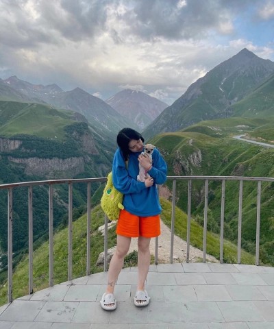 На одном из снимков девушка позирует на фоне шикарного горного пейзажа, поднявшись на смотровую площадку. Компанию блогерше составила милая крошечная собачка. На другом же Анастасиз уже сама фотографирует окружающие ее красоты, чтобы оставить себе на память и поделится, конечно же, со своими преданными фолловерами.