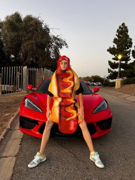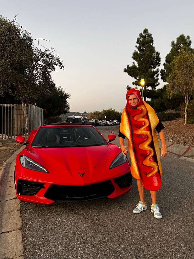 Популярный тиктокер Артур Бабич большой любитель запечатлеть себя в разных смешных образах. В этот раз парень примерил для фото яркий костюм огромного хот-дога. Артур явно подбирал эффектный наряд под авто, на котором он вместе со своей возлюбленной Аней Покров рассекает по улицам Лос-Анджелеса.