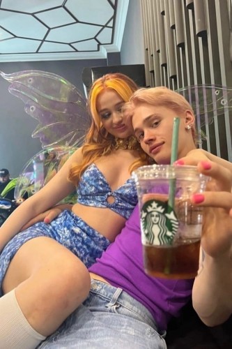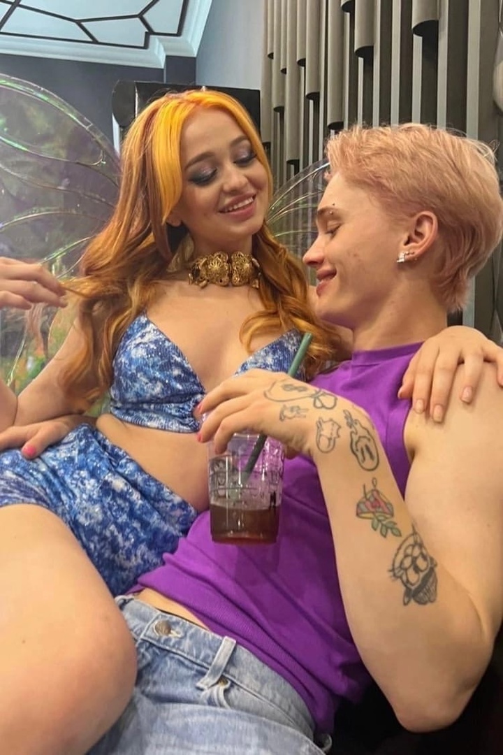 По всей видимости ребята зашли в кафе сразу после фотосессий у девочек, где они позировали в образе фей, так как Катя была в том же наряде, что и на фото с бекстейджа. Парочка, не стесняясь, обнимались на камеру, причем девушка сидела на коленях у Дани. Сам парень выглядел очень довольным, что, в принципе и понятно.