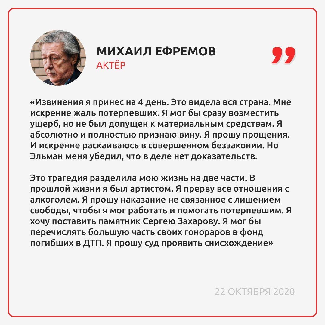 Михаил Ефремов выступил с последним словом во время апелляции приговора.