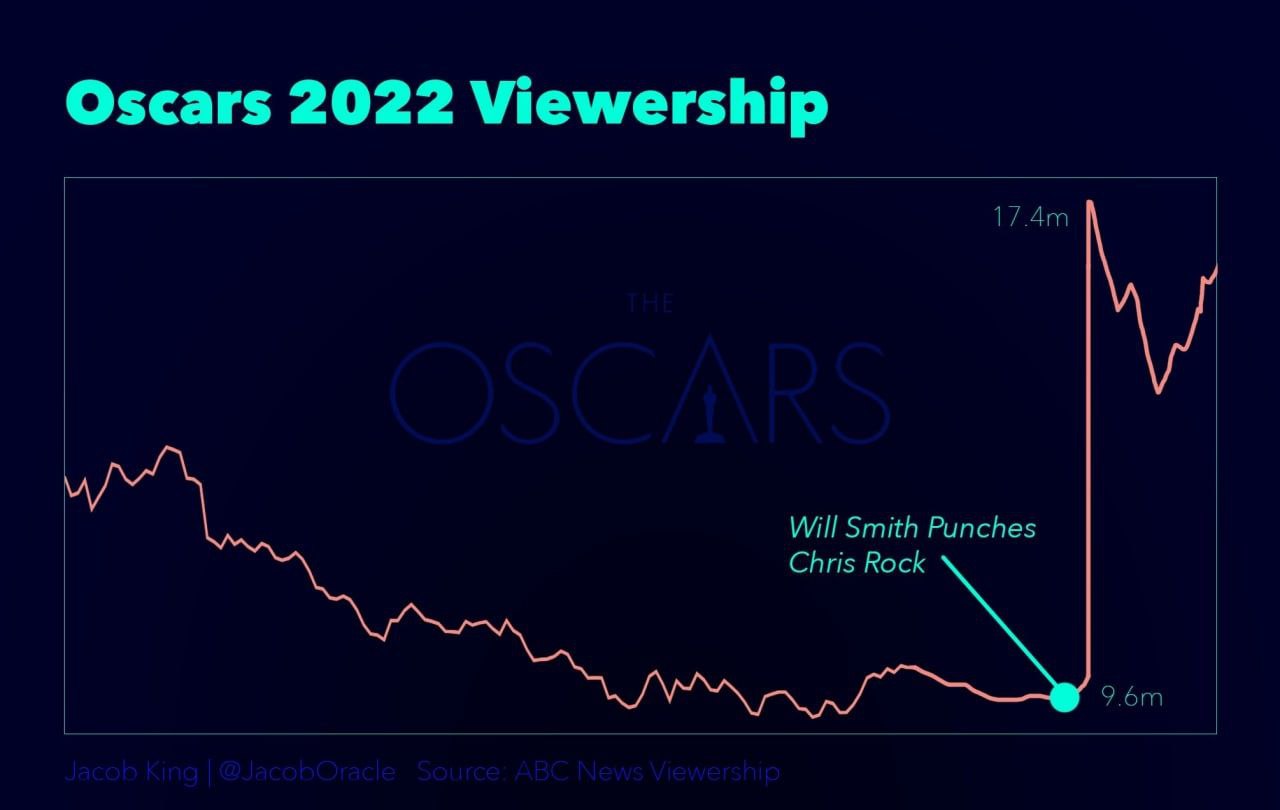 На графике можно увидеть, как подскачили просмотры Оскара после этого инцидента.
