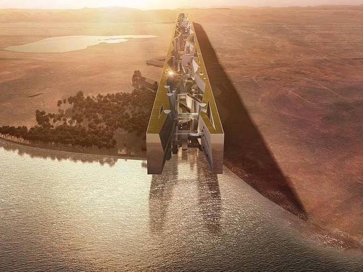 Амбициозный проект нарекли говорящим именем «Mirror Line», так как будет создан из зеркального стекла, и станет частью столь же потрясающего воображение города Неом. Состоять объект будет из двух параллельных зданий, соединенных системой пешеходных дорожек. По нижней части города будет ходить скоро..