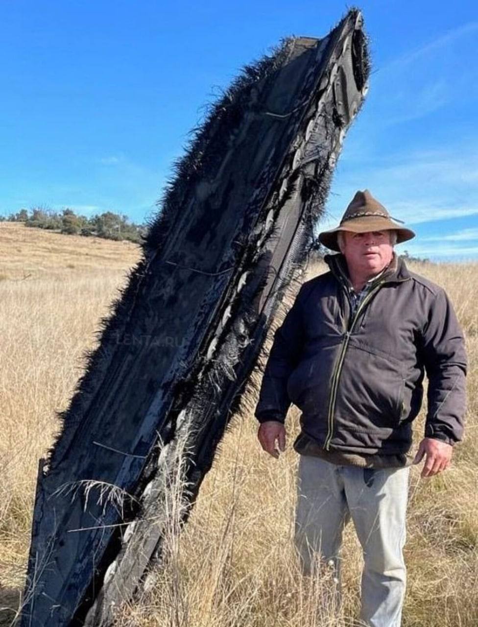 Новость о неожиданной и потенциально опасной находке пришла из Австралии. Фермер нашел на своем участке трехметровый кусок космической ракеты - есть фото на фоне обломка.