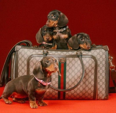 Большой модельный ряд представлен футболками, куртками, лежанками, ошейниками и многим другим в фирменном стиле бренда. Стоимость любого предмета из линейки соответствует имени и статусу Гуччи. Например, за куртку можно заплатить до 50 тысяч рублей, а лежанка для пушистого любимца обойдется почти в 400 тысяч. Цель коллекции – помочь хозяину питомца подчеркнуть индивидуальность своего четвероногого друга.