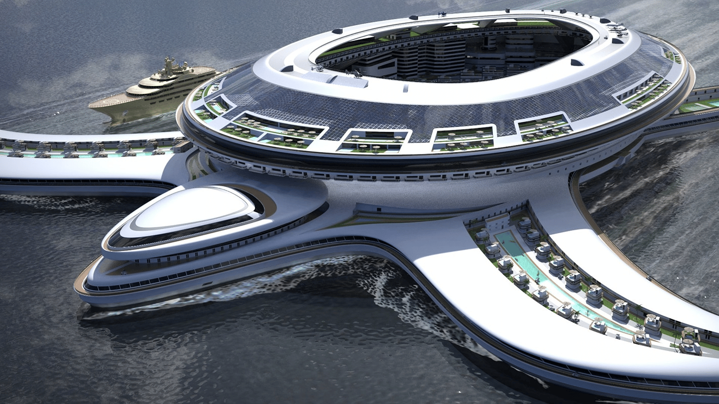 Суть новой грандиозной стройки - яхта в виде черепахи, которая может вместить одновременно до 60 тысяч человек. Название ее будет «Пангеос» (Pangeos). После выхода на воду этот проект станет самым большим плавучим сооружением, из когда-либо созданных человеком.