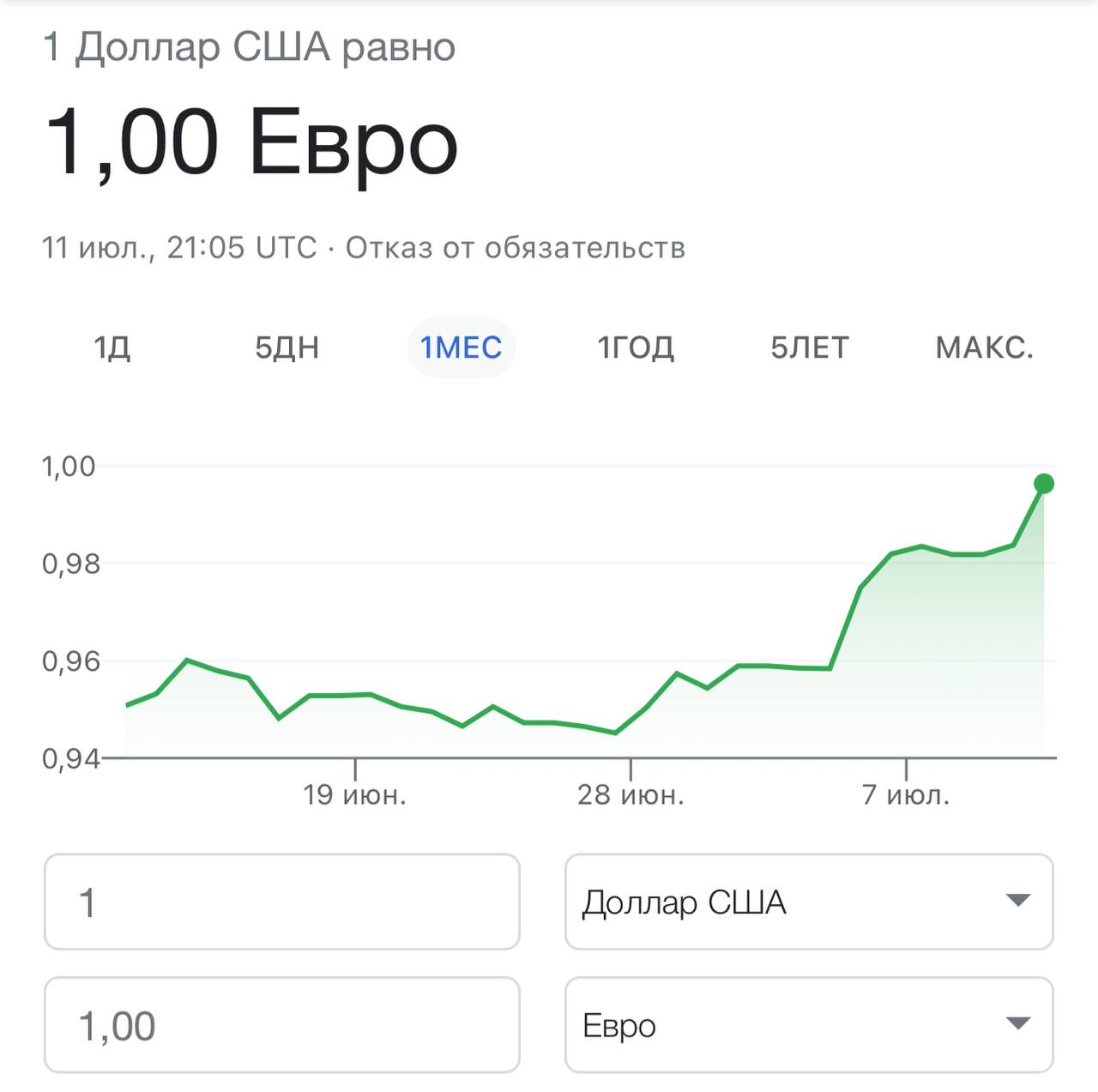 Поступает интересная информация, что впервые за двадцать лет курс евро к доллару составил 1 к 1. Это произошло впервые после того как европейскую валюту, в принципе, впервые ввели в обращение.