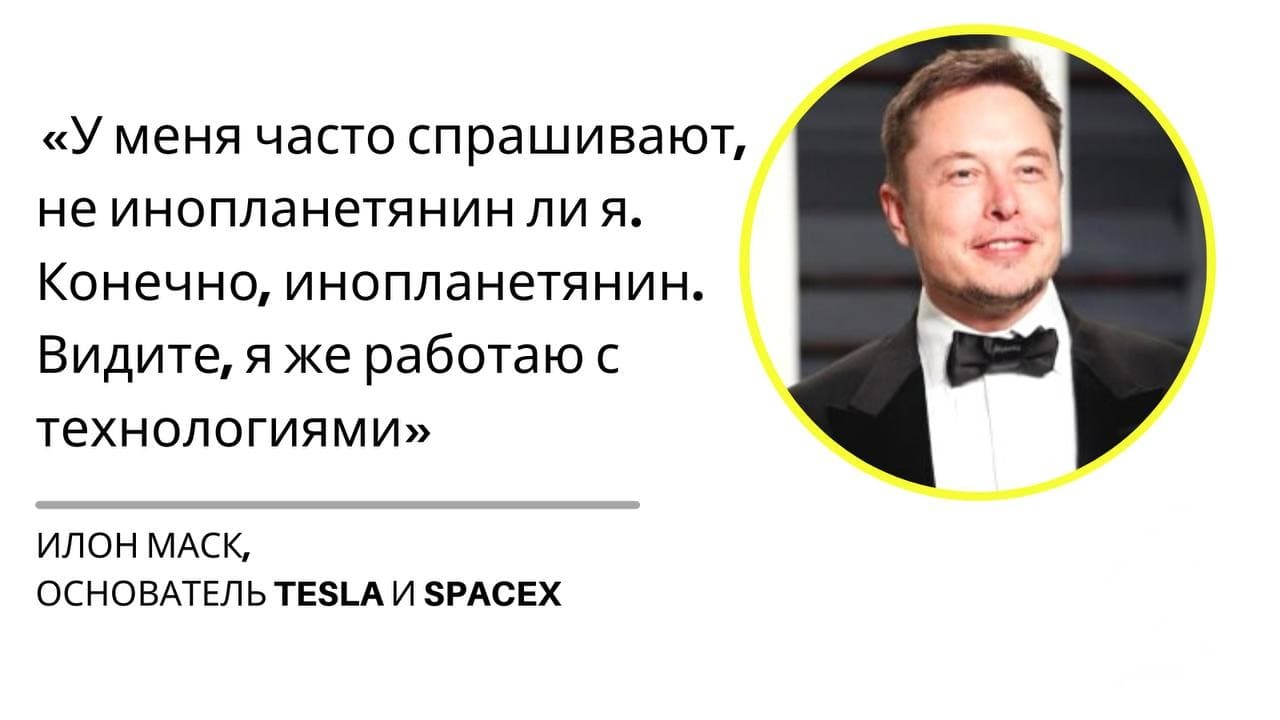 Американский миллиардер, глава компаний SpaceX и Tesla Илон Маск, выступая на российском марафоне «Новое знание», пошутил, что он инопланетянин и пришелец из будущего.