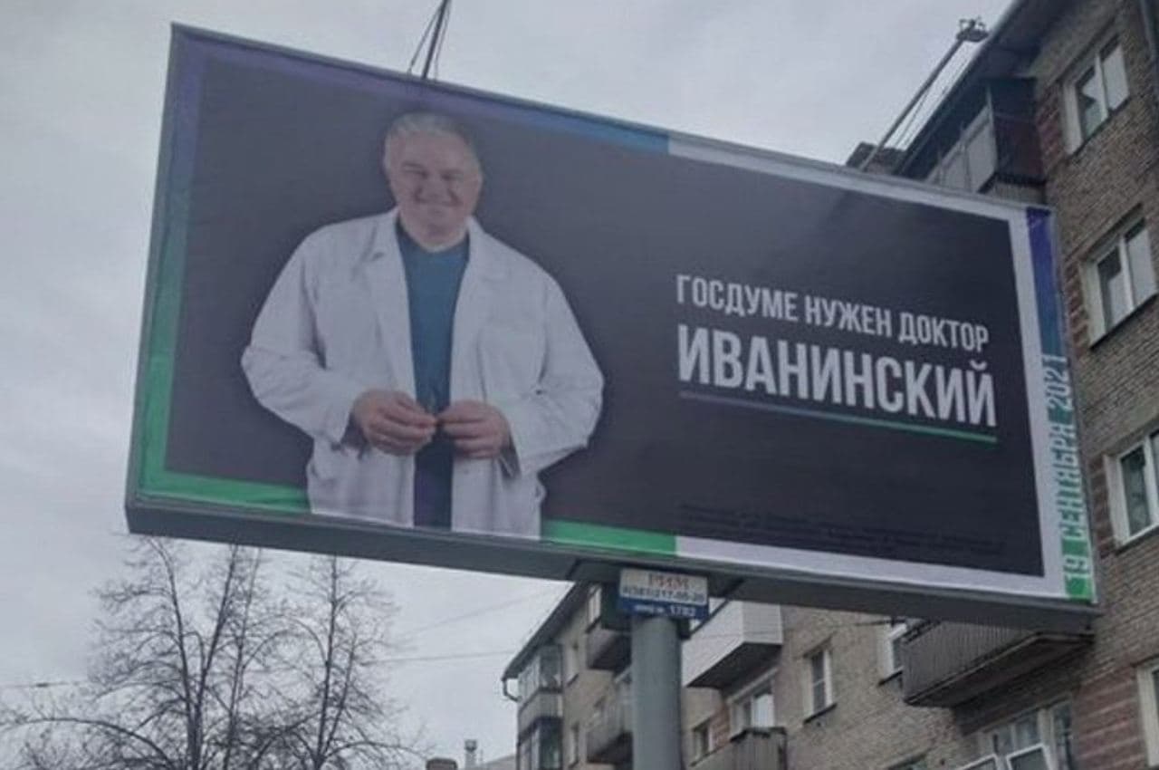 В Новосибирске врач-единоросс, баллотирующийся в Госдуму, разместил билборд со словами «Госдуме нужен доктор»
