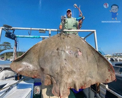 В США установлен новый рекорд в боуфишинге, подстрелив из лука ската-бабочку весом 100,9 кг