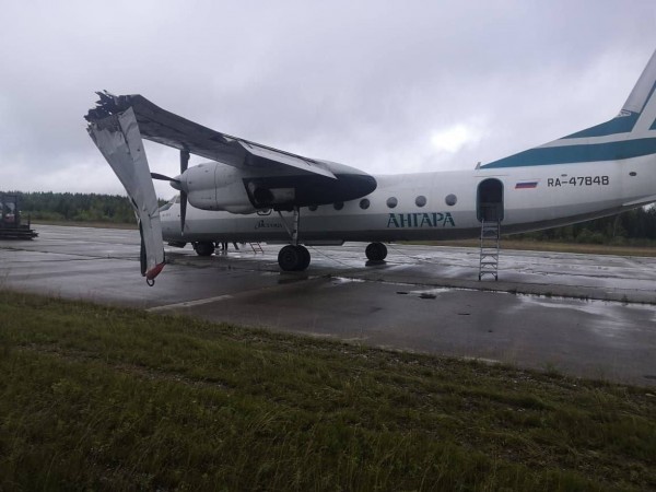 В аэропорту Усть-Кута Иркутской области у самолёта Ан-24 при посадке оторвало часть крыла (он задел крылом ВПП).
