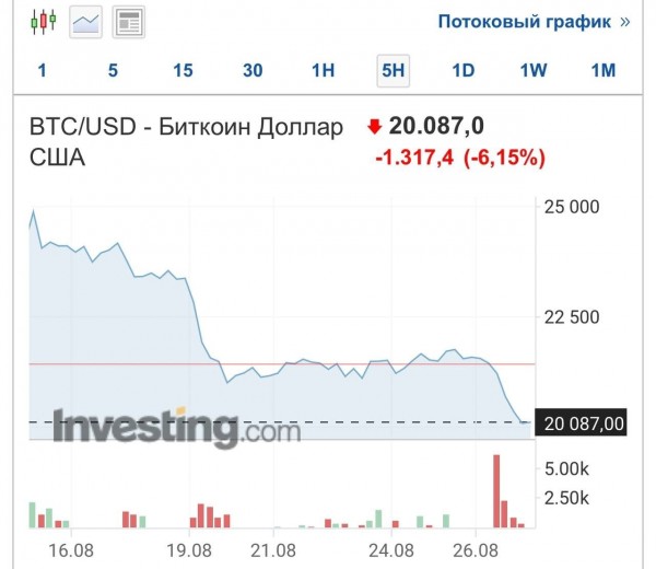 Биток за сутки потерял 6% и обрушился до $20К. Будет еще падать или все-таки наберет?