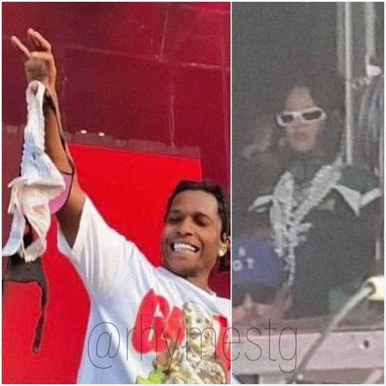 Asap Rocky ловит лифчики во время выступления в рамках фестиваля Lollapaloozа, но Рианне это совершенно не нравится!
