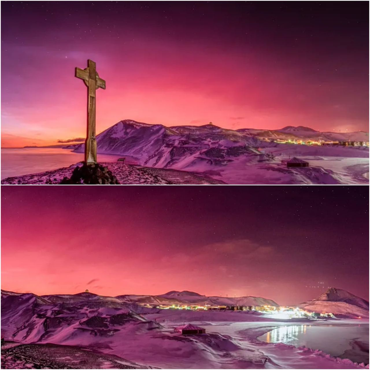 Это розовое небо в Антарктиде из-за извержения вулкана Хунга-Тонга