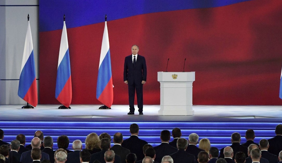 ⚡️Путин выступил с новогодним обращением к россиянам на фоне военных, а не на фоне Кремля как обычно.