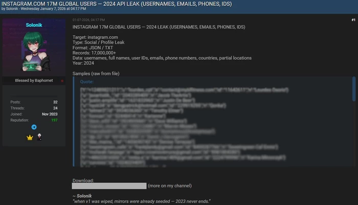 Хакеры взломали Instagram* — в даркнете появилась база данных 17,5 млн пользователей. Внутри личная информация: почта, номер телефона и другие данные. Утечка произошла ещё в 2024 году, но только сейчас её нашли и начали продавать. Пароли в базу не попали, поэтому аккаунты напрямую не взломают.