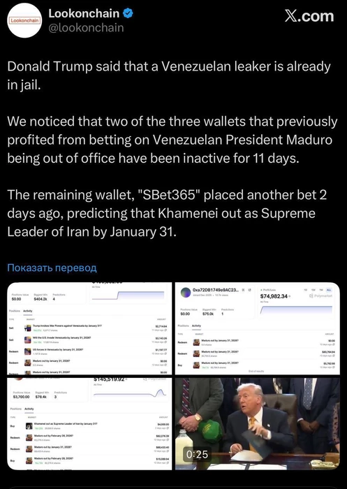 Как вы помните, я ранее писал, что некий кошелёк, поставивший на то, что власти США задержат Мадуро, заработал с 30k$ около 400k$, и ещё было несколько таких кошельков.