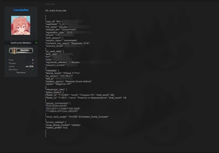 В сеть утек огромный массив данных государственного мессенджера МАХ — 15,4 миллиона пользователей. В слитой базе находятся ФИО, никнеймы, номера телефонов, сессионные токены, пароли в открытом виде, метаданные и даже исходный код бэкенда, включая модуль шифрования. Общий объём утечки — около 142 ГБ. По предварительной информации, вход нашли через критическую RCE-уязвимость в обработке медиафайлов, которая не была исправлена ещё с бета-версии 2025 года.