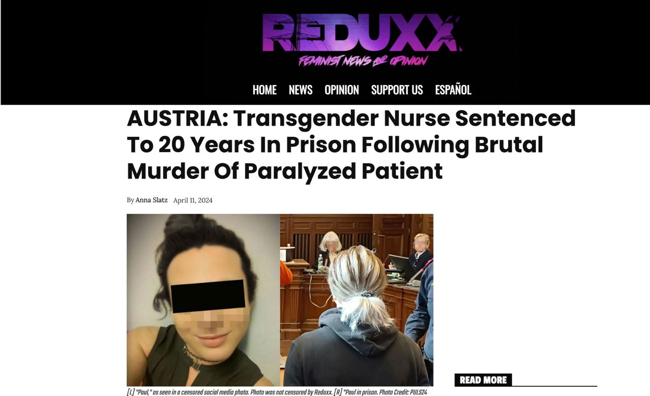 24-летний трансгендер, работавший в должности медсестры, убил 82-летнего пациента, который отказывался признавать его женщиной. Преступление произошло в октябре прошлого года в австрийском Геретсберге. Мужчина, идентифицирующий себя как женщина по имени Пол, пришел на помощь парализованному старику. Однако пациент не принял его за женщину, что привело к трагическим последствиям. Пол схватил ножи из кухни и нанес 82-летнему мужчине 11 ударов. После этого он вызвал полицию и сообщил о случившемся.