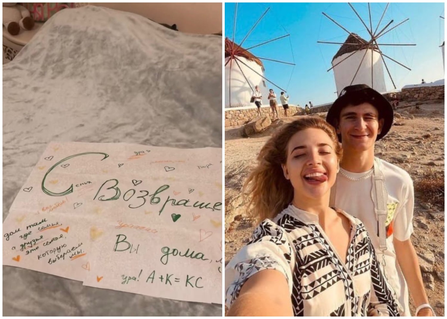Друзья из тиктокерского дома Dream Team Xayc встретили Аню Покров и Артура Бабича таким плакатом с оригинальной надписью: «Дом там, где семья. А друзья — это семья, которую выбираем мы».