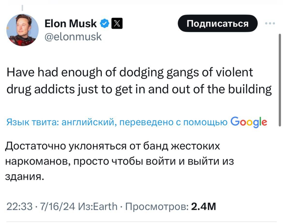 Илон Маск объявил о переносе штаб-квартир SpaceX и X из Калифорнии в Техас из-за новых законов штата, касающихся гендерной идентификации детей. По его словам, решение о переезде было вызвано также наличием наркоманов, создающих проблемы для сотрудников выходящих из офиса X.