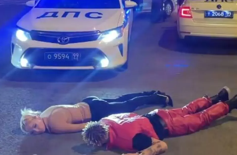 Ивлеева поделилась видео, где она с супругом лежит на асфальте рядом с машиной ДПС.