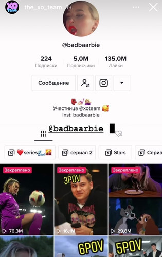 Команда тиктокеров из тиктокерского дома XO Team в последнее время набирает обороты семимильными шагами. И это благоприятно сказывается на отдельных блогерах. Так Настя Бэдбарби смогла взять рубеж в 5 МЛН. подписчиков в Тик-Токе.
