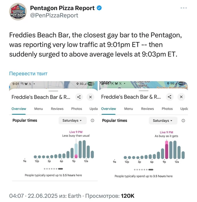 В то же время ближайший гей-бар оказался полупустым, что также привлекло внимание. Ситуация вызвала ироничные комментарии о том, что после возвращения американской авиации на базу, мужчины из Пентагона, вероятно, поспешили исправить это недоразумение, заполнив заведение. Этот случай подчеркивает, как повседневные события могут неожиданно пересекаться с военной активностью и создавать интересные наблюдения.