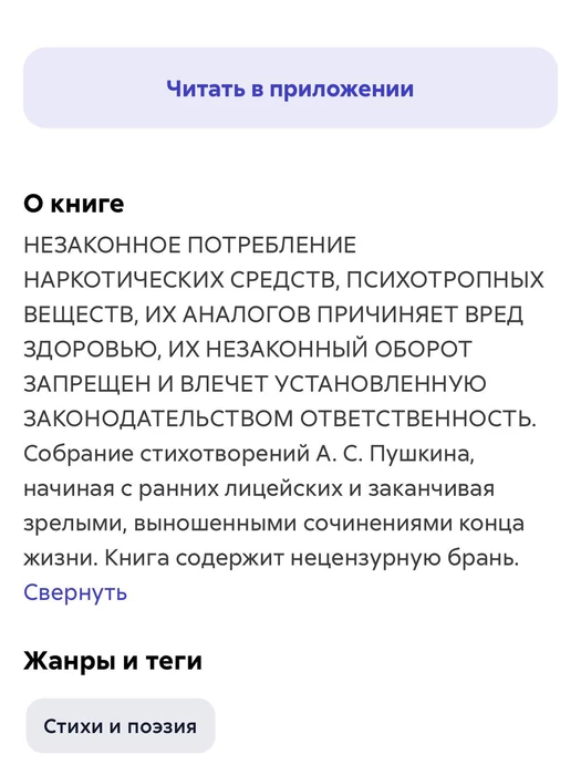 Классика оказалась в центре громкой темы. На онлайн-площадках произведения Александр Пушкин начали сопровождать предупреждениями о вреде запрещённых веществ. Причина — отдельные эпизоды в текстах, которые теперь трактуют как возможные упоминания.