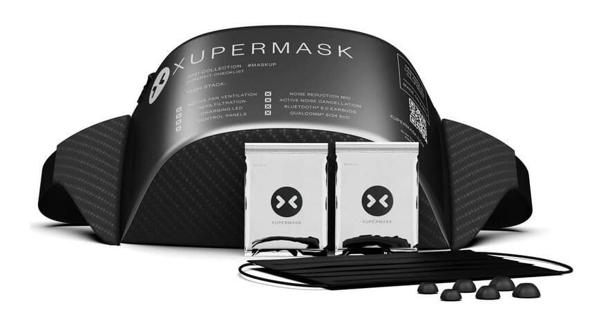 Содержит маска следующее: система фильтрации с двумя вентиляторами, светодиодной подсветка, встроенный микрофон, пара наушников с активным шумоподавлением и Bluetooth 5.0.