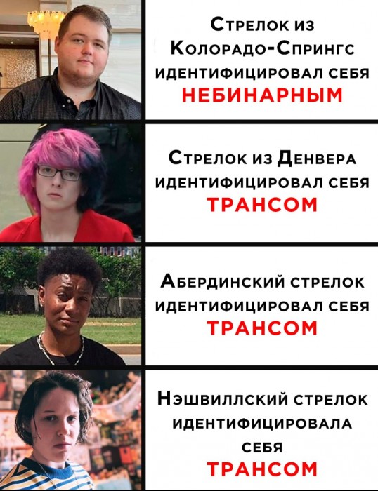 Жертвами нападения стали шесть человек — трое детей и трое работников школы. Ответным огонем полиции трансгендер был отправлен на тот свет.