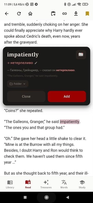 Появилось крутое приложение, которое позволяет учить иностранные языки через любимые фанфики, книги и тексты. Просто читаешь то, что реально интересно, тапаешь на незнакомое слово — и сразу получаешь перевод с примерами и контекстом. Новые слова автоматически закрепляются через карточки, квизы и мини-игры.