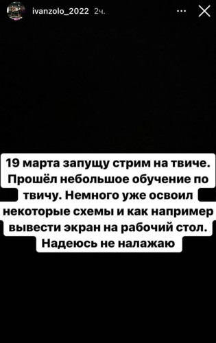 Популярный стример Иван Золо объявил о том, что уже сегодня, 19 марта, он запустит стрим на Твиче. Ранее ему дали бан за драку. Ваня прошел небольшое обучение по стриму и надеется на то, что не подведет своих поклонников и не налажает.