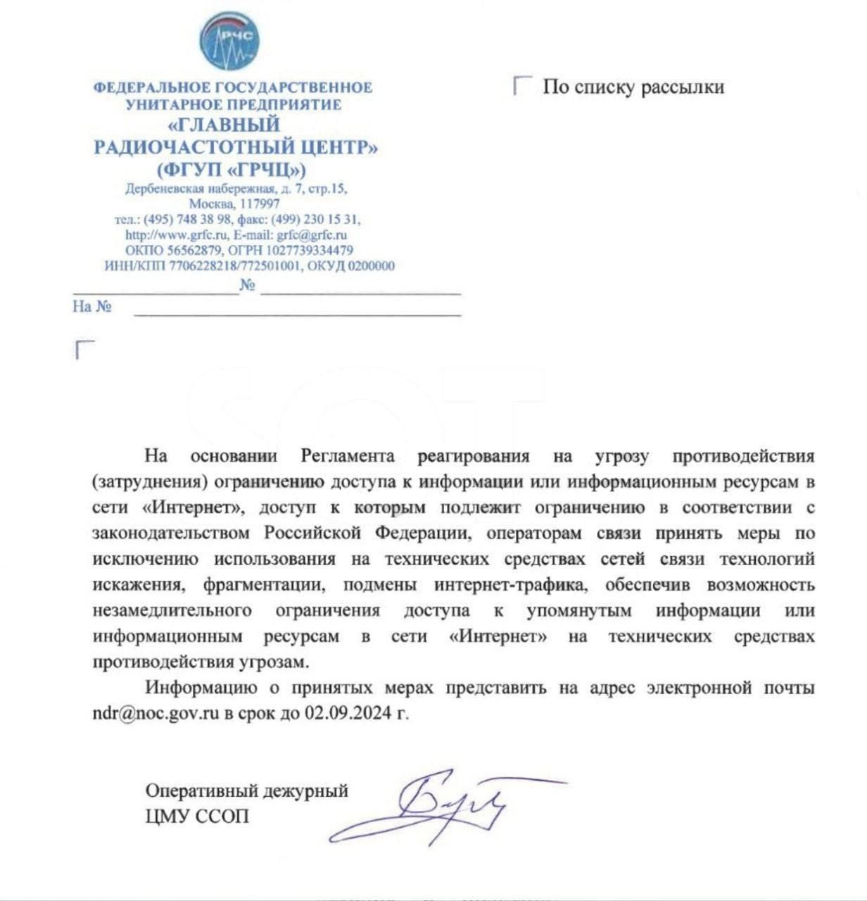 UPD 29.08.24: Роскомнадзор запретил операторам связи самостоятельно ускорять YouTube и потребовал устранить связанные с этим технические решения до 2 сентября.