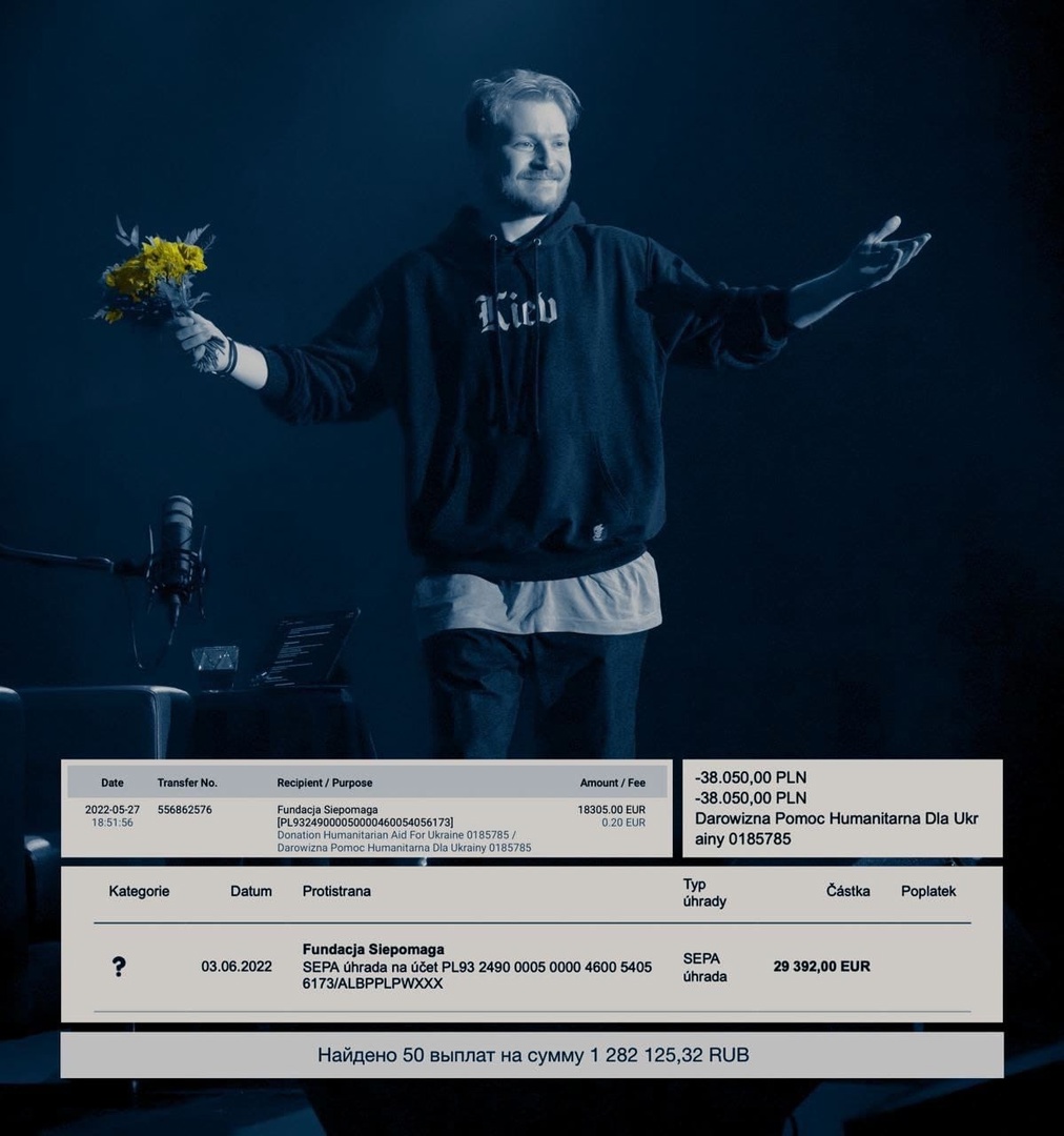 «Очень хочу выразить респект всем своим коллегам, которые уже помогли и продолжают помогать людям: Оксимирону, Нойзу МС, Лизе Монеточке, Славе Комиссаренко, Максиму Галкину, Денису Чужому и многим другим» - сказал Данила. Артист пообещал увеличить сумму пожертвований за счет донатов.