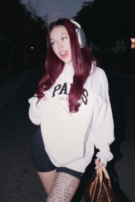 Также для позирования рэперша примерила светлый свитшот и очередной парик, в этот раз красного оттенка. Из аксессуаров выделяются объемная брендовая сумка и наушники. Фолловерам образ и фигура очень понравились, о чем они и рассказали в комментариях.