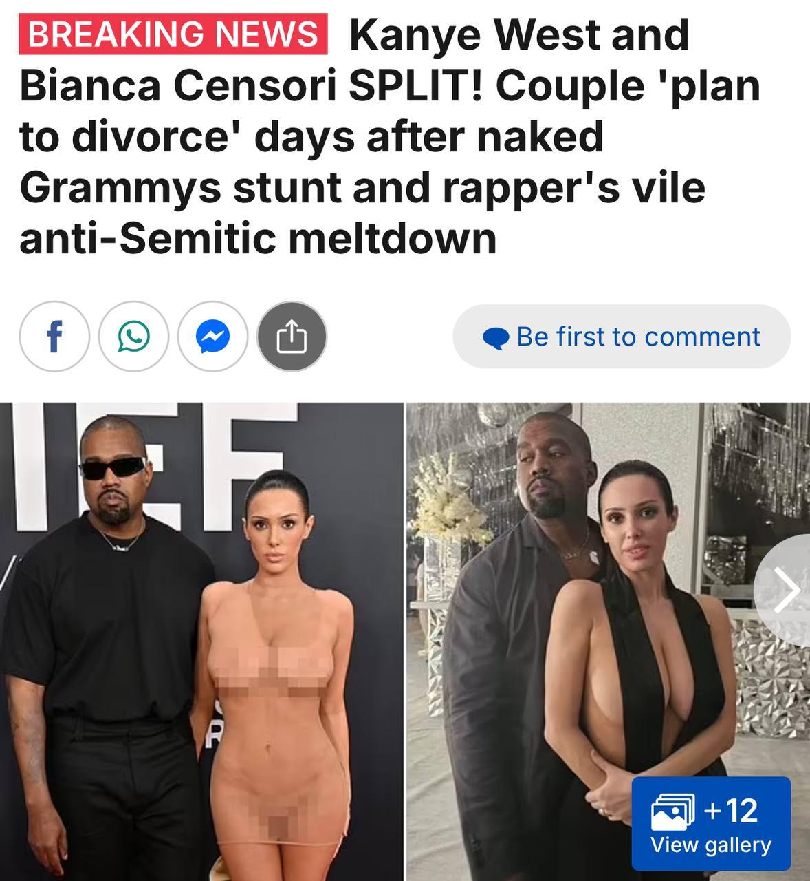 По информации источников, причиной разрыва стали радикальные высказывания Канье, которые Бьянка больше не могла терпеть. Пара уже разъехалась и намерена оформить развод в ближайшие дни.