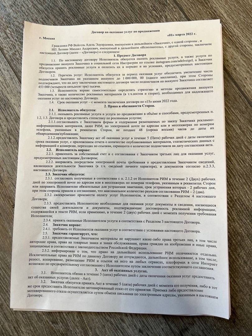 Известный блогер признался, что их отношения были ради одной единственной цели - миллион подписчиков на аккаунте Адель. За это она заплатила Литвину 30 миллионов рублей. Миша даже показал договор, в котором все это прописано.